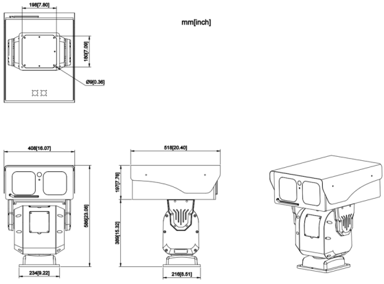 პან: 360 ° როტაცია; დახრილი: - 70 ° ~+20 ° |