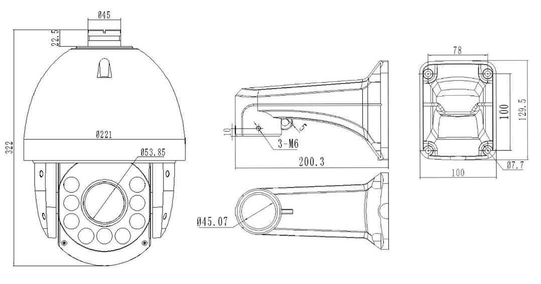 პან: 360 °; დახრილი: - 5 ° ~ 90 ° |
